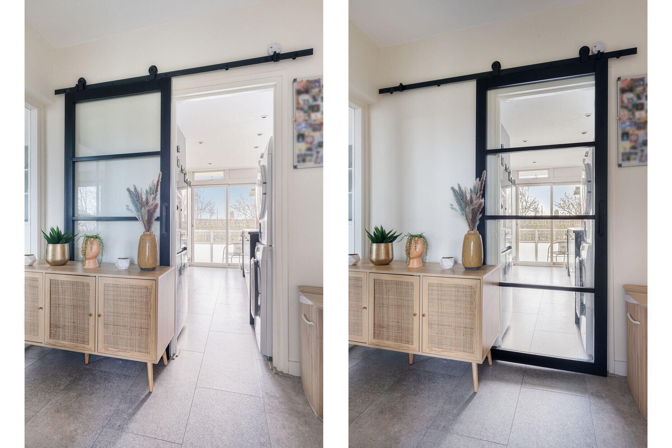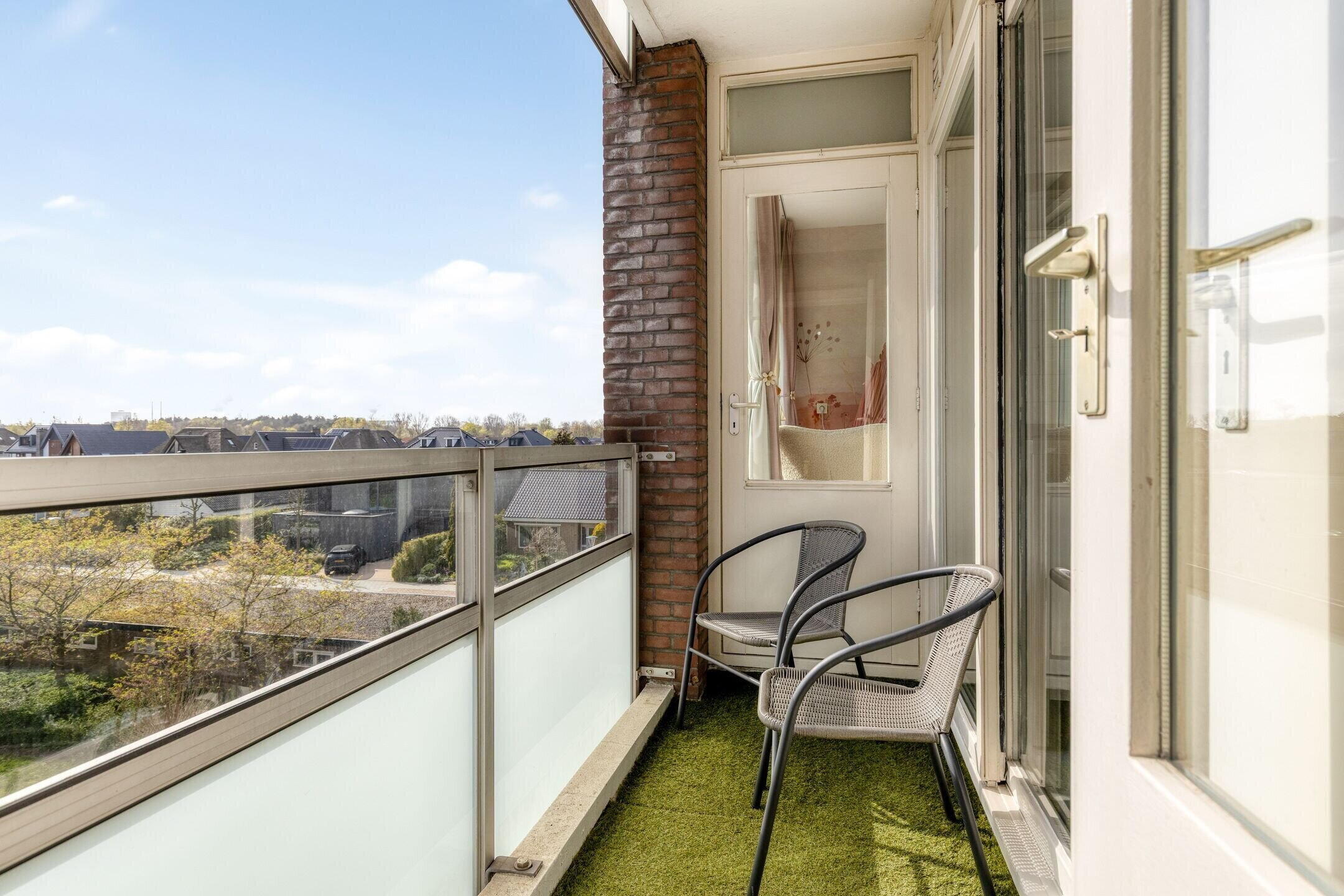 At the rear of the apartment is a second balcony, accessible from the kitchen — ideal as extra outdoor space to enjoy the afternoon and evening sun. The central heating unit (Intergas 2022) is accessible from this balcony.