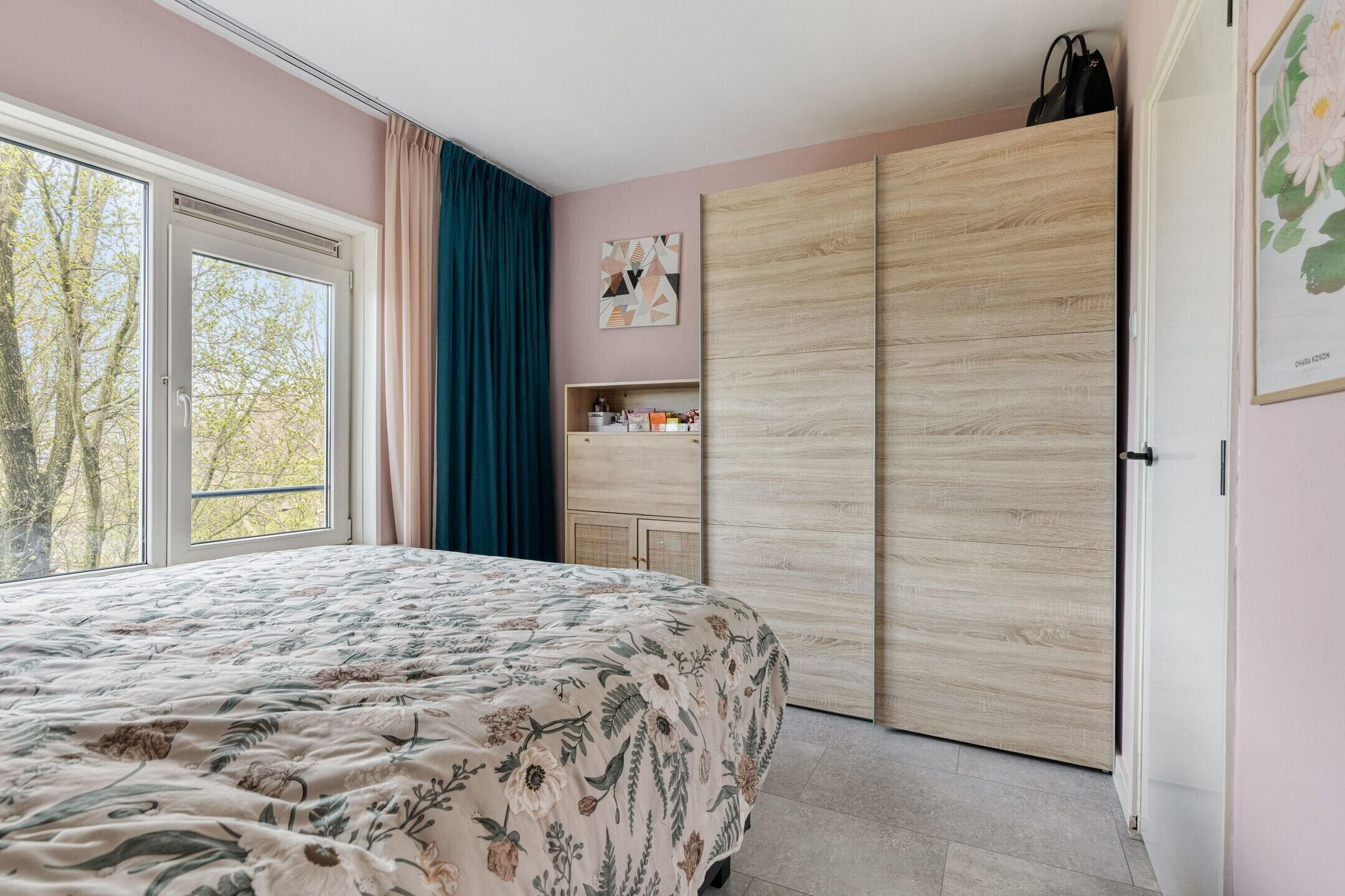 De twee slaapkamers zijn beide goed van formaat en hebben een vrij uitzicht op het groen rondom het complex.