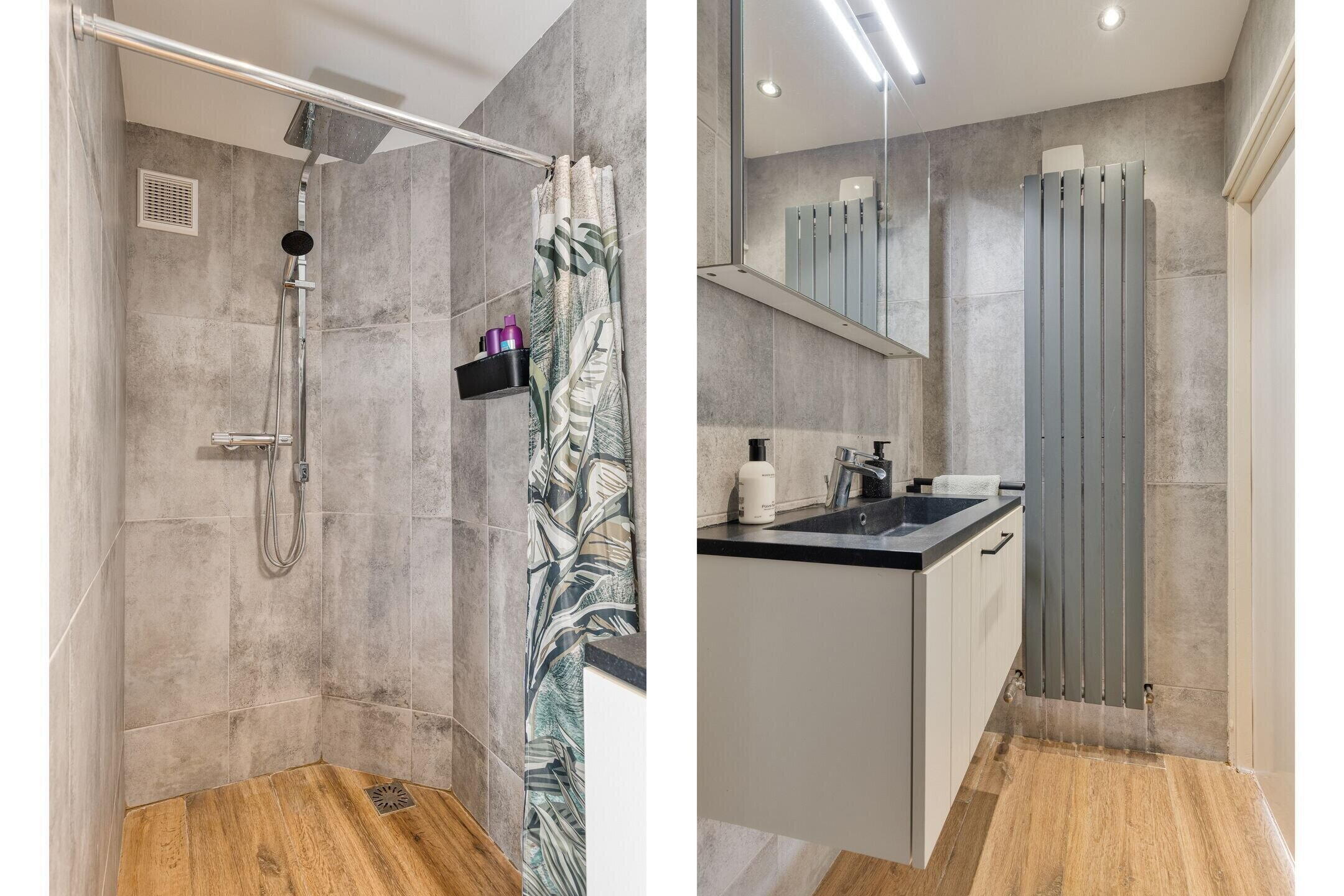 - Walk-in shower and washbasin