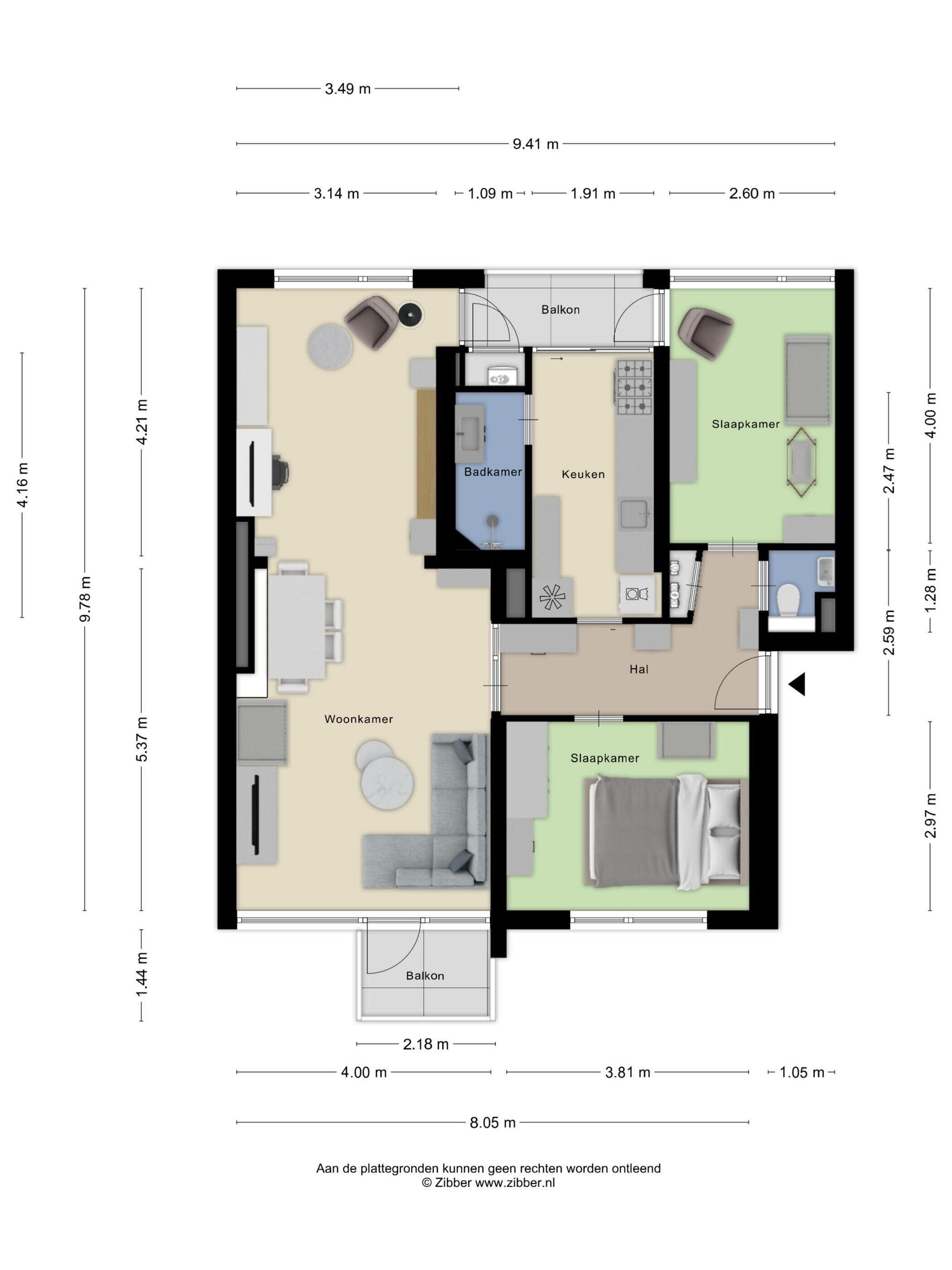 • 2 slaapkamers. (met de mogelijkheid tot het creëren van een derde slaapkamer)